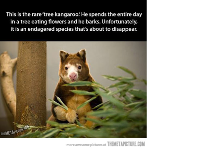 Tree kangaroos have fur which is usually a deep shade of red or brown. They dwell in trees which have similar shades of leaves and branches, which offers a great camouflage for these little animals.