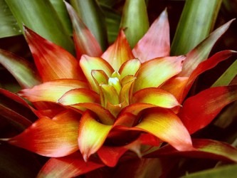 Bromeliads are found almost exclusively in the Americas. Some grow in the ground, like pineapple, but most species grow on the branches of trees. Their leaves form a vase or tank that holds water. Small roots anchor plants to supporting branches, and their broad leaf bases form a water-holding tank or cup. The tank's capacity ranges from half a pint to 12 gallons or more. The tanks support a thriving eco-system of bacteria, protozoa, tiny crustaceans, mosquito and dragonfly larvae, tadpoles, birds, salamanders and frogs.
