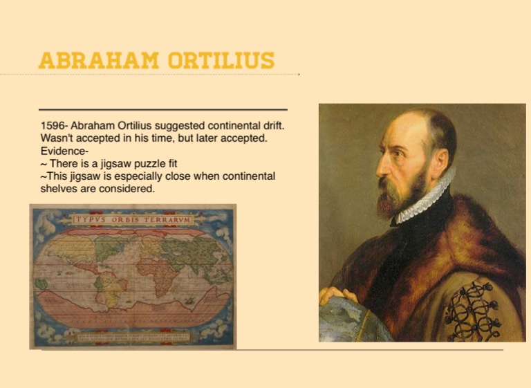 1596- Abraham Ortilius suggested continental drift.