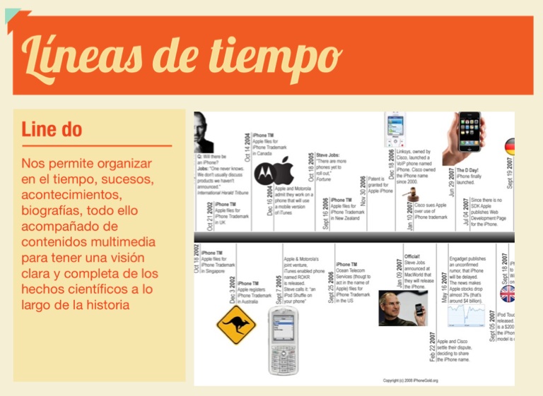 Nos permite organizar en el tiempo, sucesos, acontecimientos, biografías, todo ello acompañado de contenidos multimedia para tener una visión clara y completa de los hechos científicos a lo largo de la historia