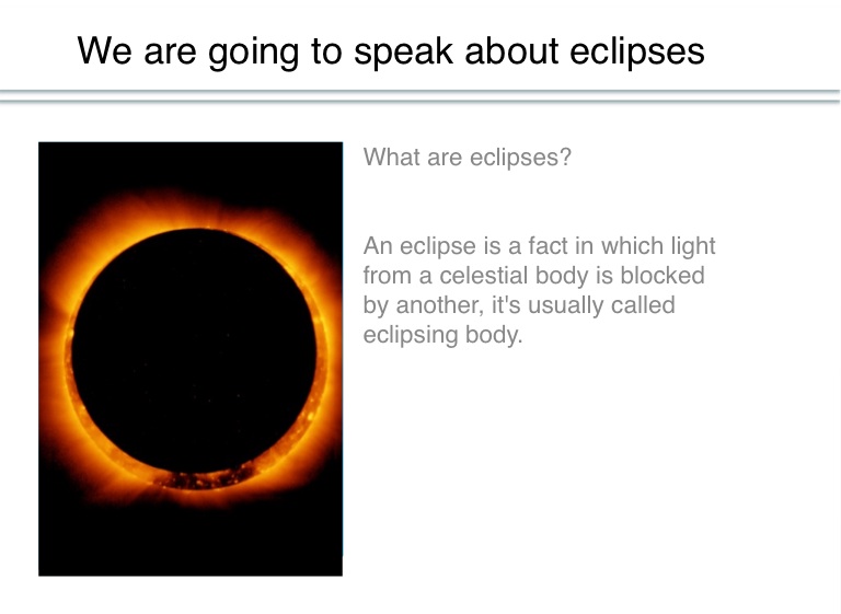 An eclipse is a fact in which light from a celestial body is blocked by another, it's usually called eclipsing body.