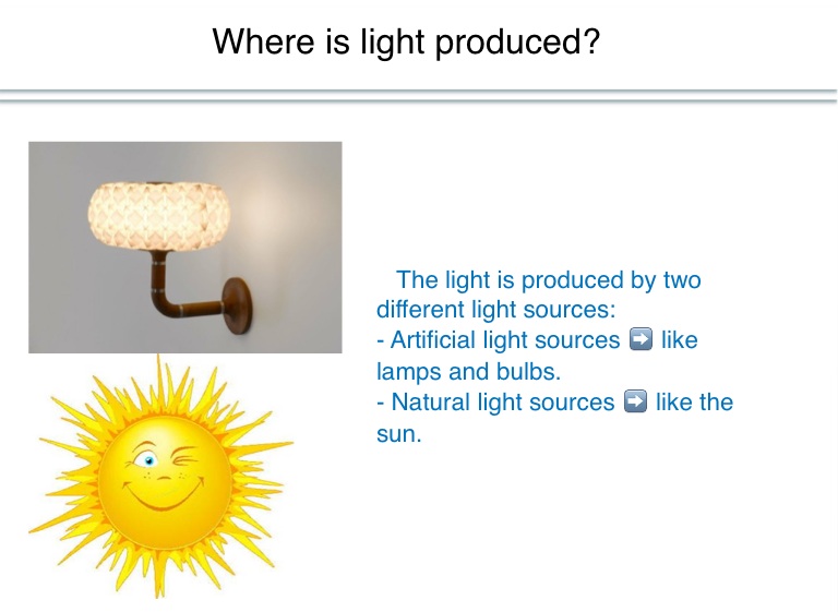 - Artificial light sources ➡️ like lamps and bulbs.
