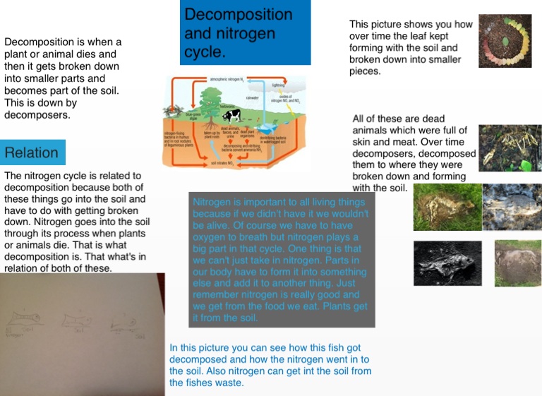 The nitrogen cycle is related to decomposition because both of these things go into the soil and have to do with getting broken down. Nitrogen goes into the soil through its process when plants or animals die. That is what decomposition is. That what's in relation of both of these.