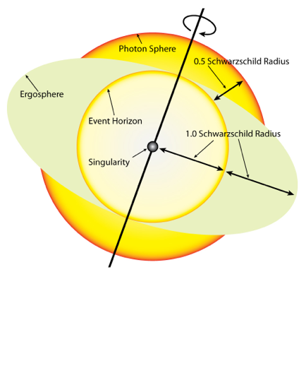 Composition: Ergosphere, photon sphere, event horizon, singularity