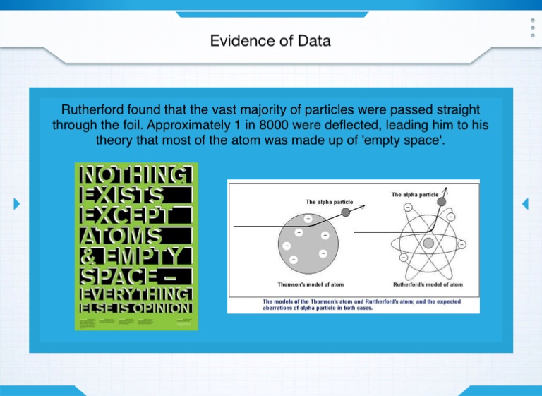 Rutherford found that the vast majority of particles were passed straight through the foil. Approximately 1 in 8000 were deflected, leading him to his theory that most of the atom was made up of 'empty space'.