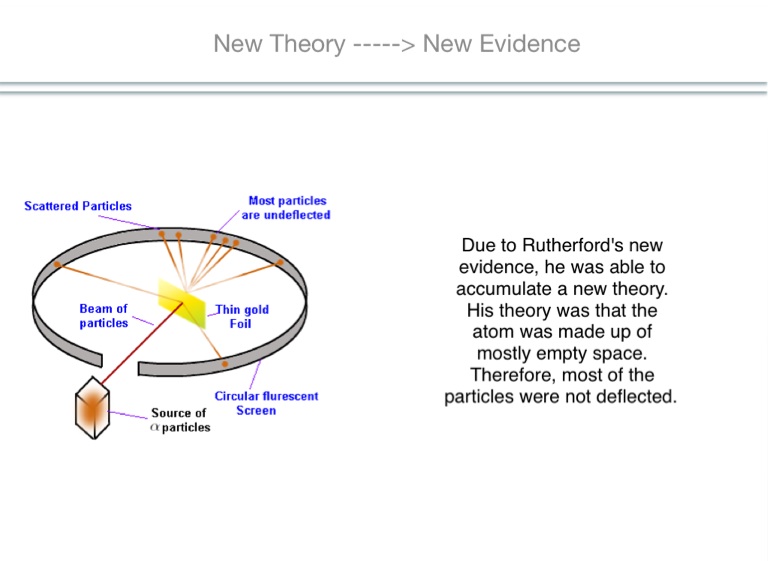 Due to Rutherford's new evidence, he was able to accumulate a new theory. His theory was that the atom was made up of mostly empty space. Therefore, most of the particles were not deflected.