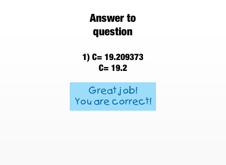 1) C= 19.209373 C= 19.2