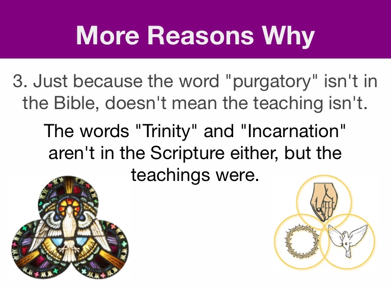 3. Just because the word "purgatory" isn't in the Bible, doesn't mean the teaching isn't.