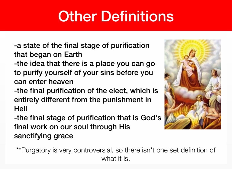 **Purgatory is very controversial, so there isn't one set definition of what it is.