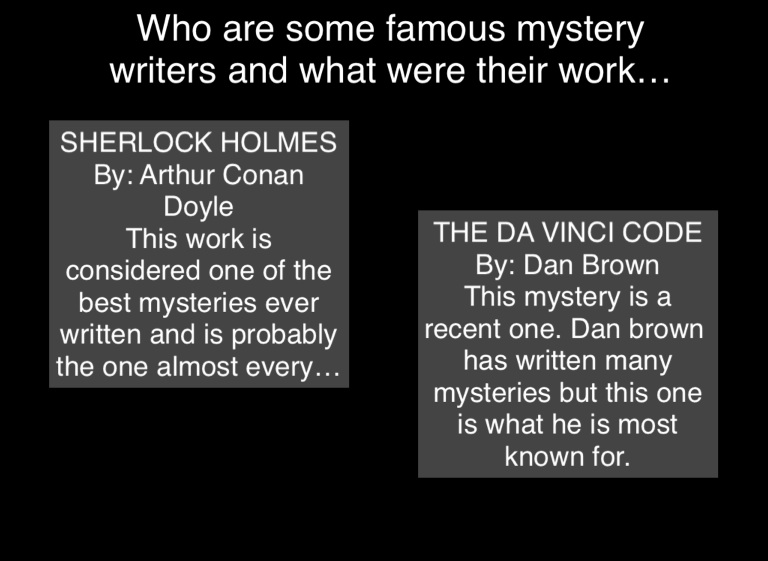 This mystery is a recent one. Dan brown has written many mysteries but this one is what he is most known for.