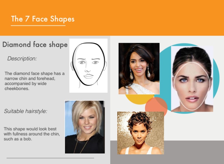 The diamond face shape has a narrow chin and forehead, accompanied by wide cheekbones.