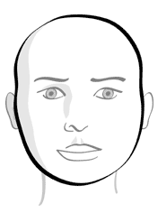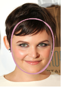 This shape would look best with side swept bangs, longer length will help the face appear longer as well.