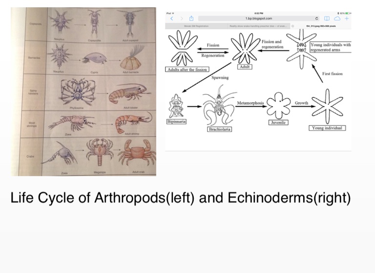Life Cycle of Arthropods(left) and Echinoderms(right)