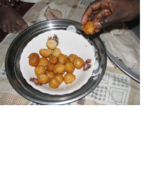 In the drier regions of the north and east, dairy products and millet are the most common ingredients in dishes. A typical northern dish is esh, cooked millet flour served with a sauce.