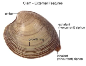 There is not a lot that the clam and frog have in common when it comes to the external anatomy but there are a few. The clam and the frog both have passages to inhale and exhale. In the clam this is called the siphons. There is also a foot in the clam that comes through the shells for movement around the ocean floor.