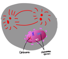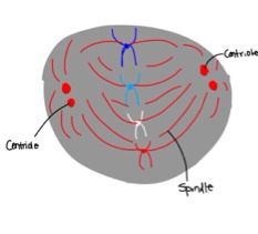 This is where the chromosomes line- up across the center of the cell. Each chromosome is touching a spindle fiber at the center of the centerome.