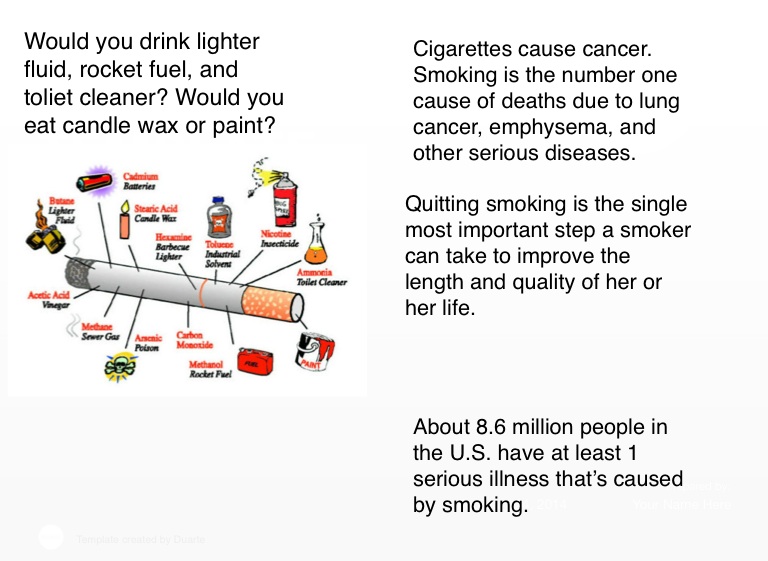Cigarettes cause cancer. Smoking is the number one cause of deaths due to lung cancer, emphysema, and other serious diseases.