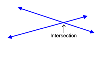 Parallel lines, perpendicular lines, and intersecting lines. Parallel lines are parallel from each other which means they are opposite and will never touch. Perpendicular lines are lines that meet and form an addition sign with all sides that are right (as shown below). Intersecting lines are lines that intersect or meet at a certain point.