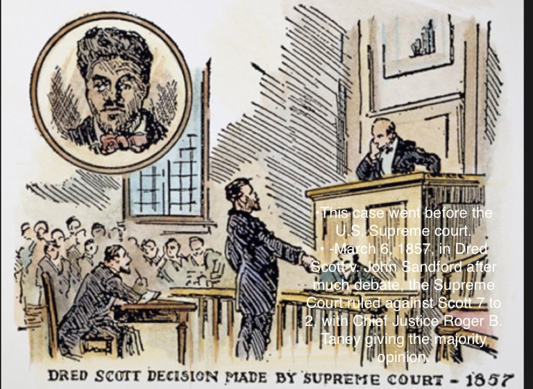• -March 6, 1857, in Dred Scott v. John Sandford after much debate, the Supreme Court ruled against Scott 7 to 2, with Chief Justice Roger B. Taney giving the majority opinion.