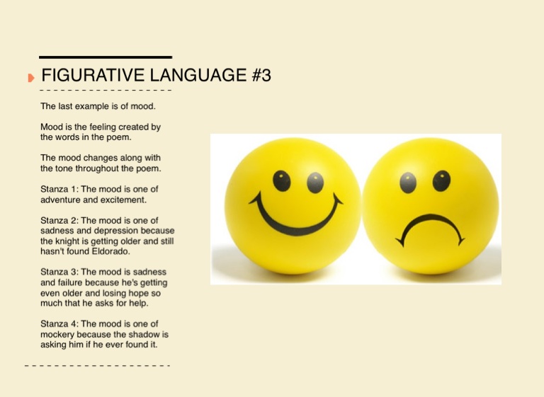 Stanza 2: The mood is one of sadness and depression because the knight is getting older and still hasn't found Eldorado.