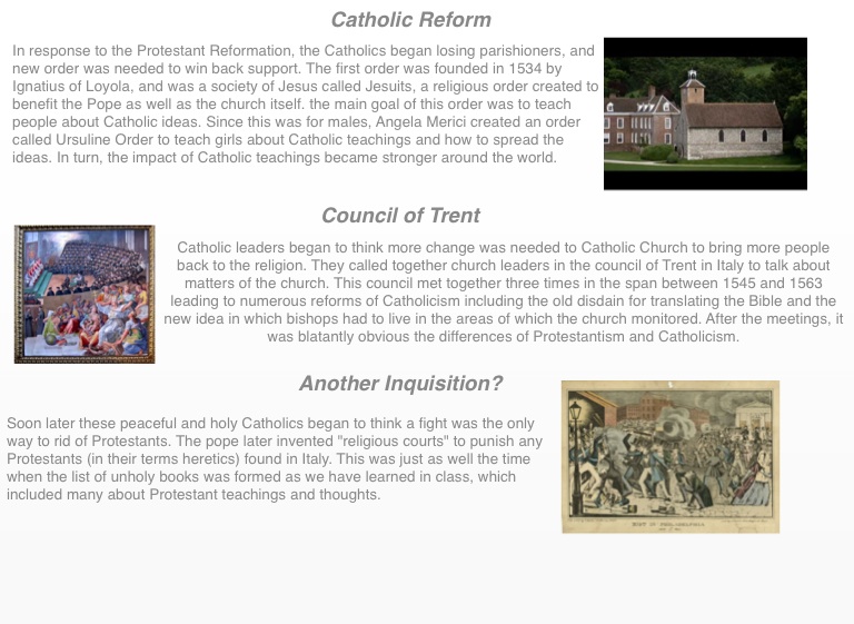 Soon later these peaceful and holy Catholics began to think a fight was the only way to rid of Protestants. The pope later invented "religious courts" to punish any Protestants (in their terms heretics) found in Italy. This was just as well the time when the list of unholy books was formed as we have learned in class, which included many about Protestant teachings and thoughts.