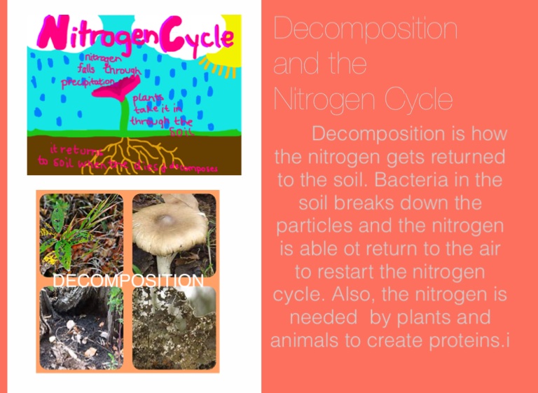 Decomposition is how the nitrogen gets returned to the soil. Bacteria in the soil breaks down the particles and the nitrogen is able ot return to the air to restart the nitrogen cycle. Also, the nitrogen is needed by plants and animals to create proteins.i