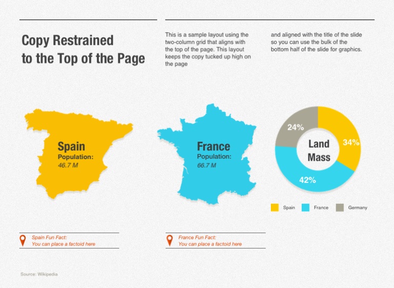 two-column grid that aligns with the top of the page. This layout keeps the copy tucked up high on the page