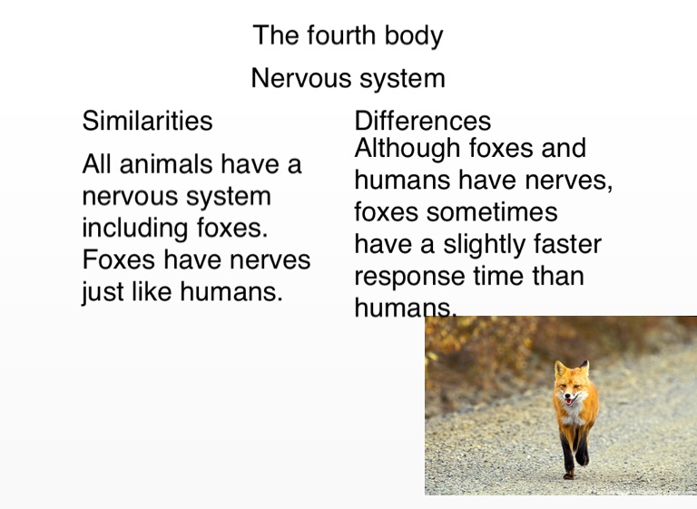 Although foxes and humans have nerves, foxes sometimes have a slightly faster response time than humans.