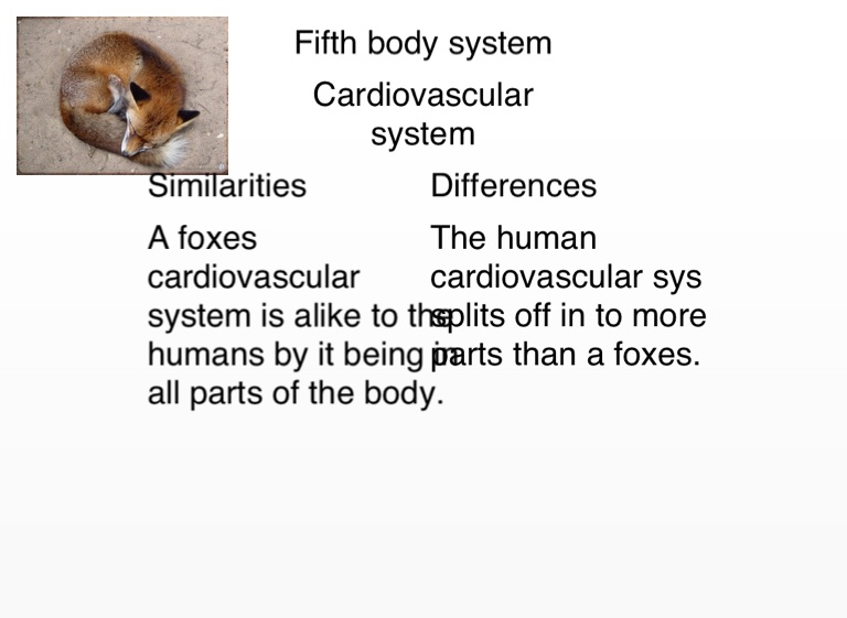 A foxes cardiovascular system is alike to the humans by it being in all parts of the body.