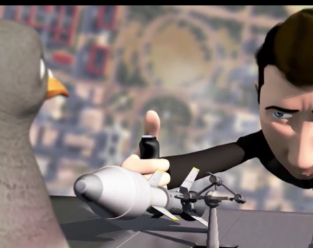 From Pigeon:Impossible. This is an example of situational irony because the audience would expect the man to shoot the pigeon but instead he opens up a button that releases the donut.