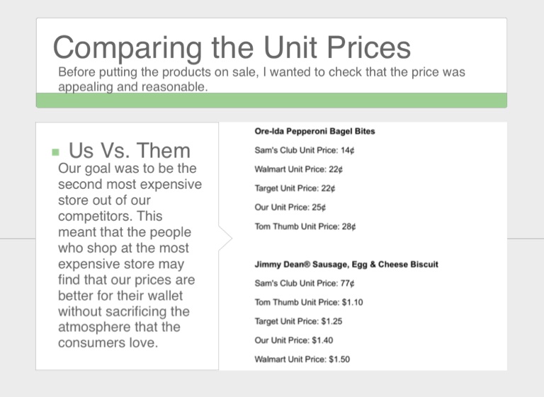 Our goal was to be the second most expensive store out of our competitors. This meant that the people who shop at the most expensive store may find that our prices are better for their wallet without sacrificing the atmosphere that the consumers love.