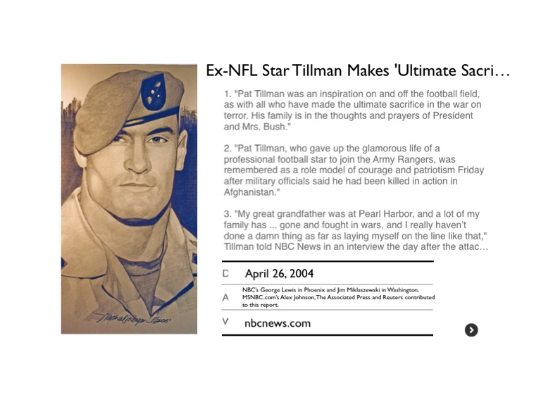 Ex-NFL Star Tillman Makes 'Ultimate Sacrifice'