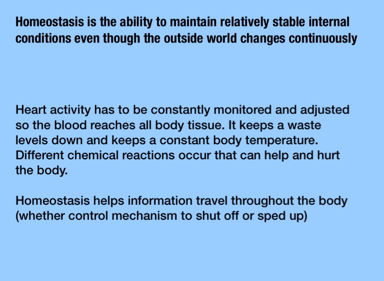 Homeostasis helps information travel throughout the body (whether control mechanism to shut off or sped up)