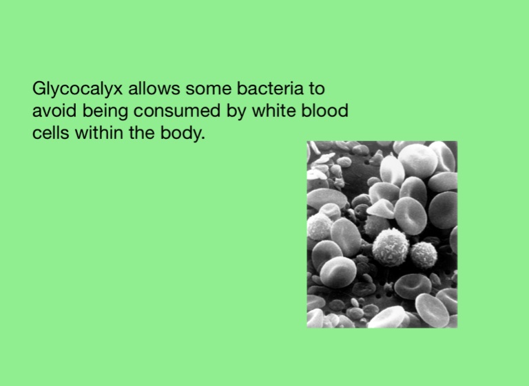 Glycocalyx allows some bacteria to avoid being consumed by white blood cells within the body.