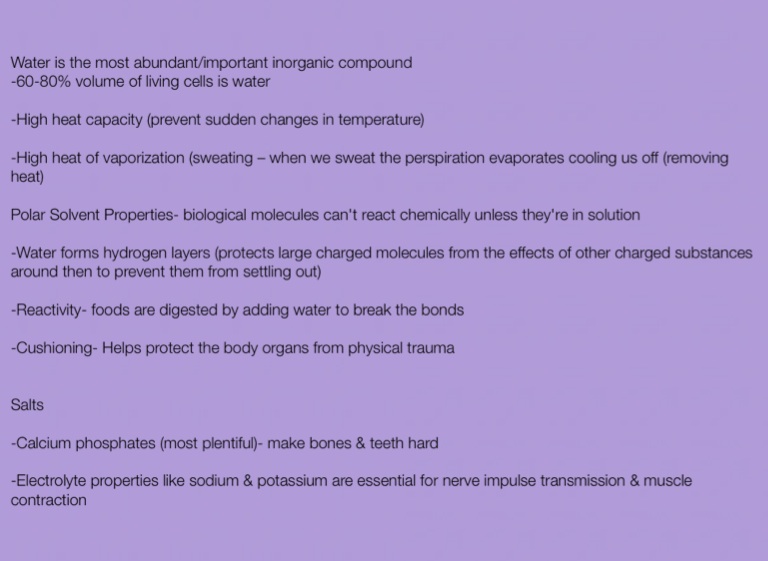 Water is the most abundant/important inorganic compound