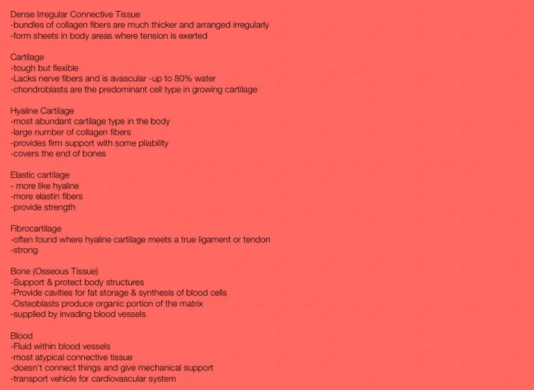 -bundles of collagen fibers are much thicker and arranged irregularly