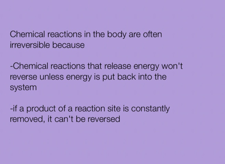 -Chemical reactions that release energy won't reverse unless energy is put back into the system