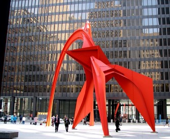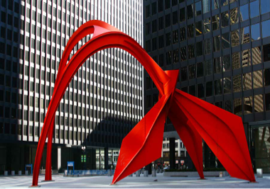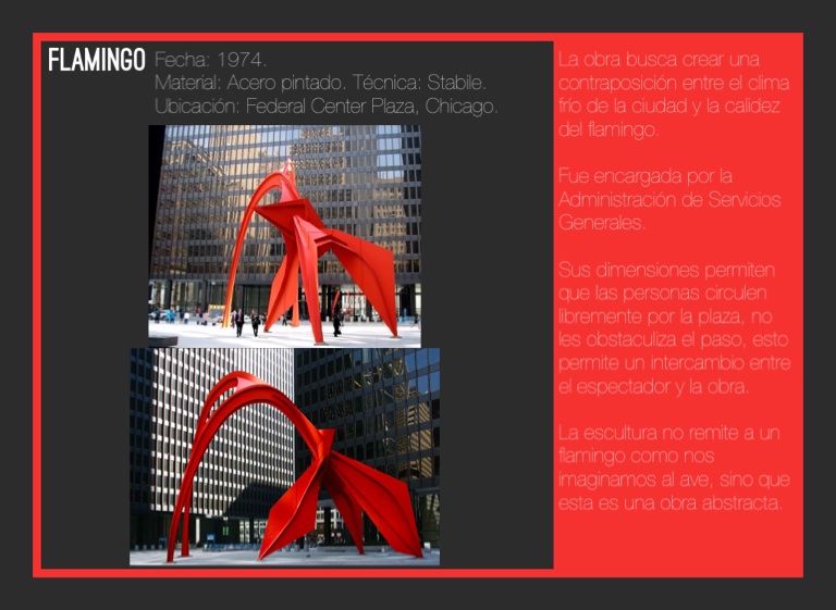 La escultura no remite a un flamingo como nos imaginamos al ave, sino que esta es una obra abstracta.