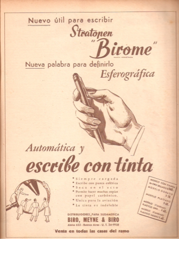 Birome advertisement in Argentine magazine Leoplán, 1945.