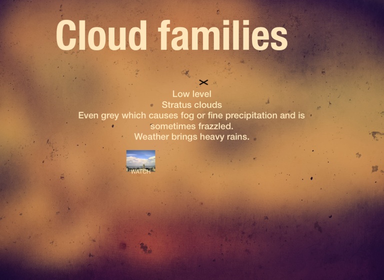 Low level Stratus clouds Even grey which causes fog or fine precipitation and is sometimes frazzled. Weather brings heavy rains.