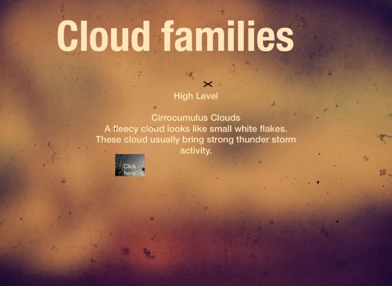 High Level Cirrocumulus Clouds A fleecy cloud looks like small white flakes. These cloud usually bring strong thunder storm activity.