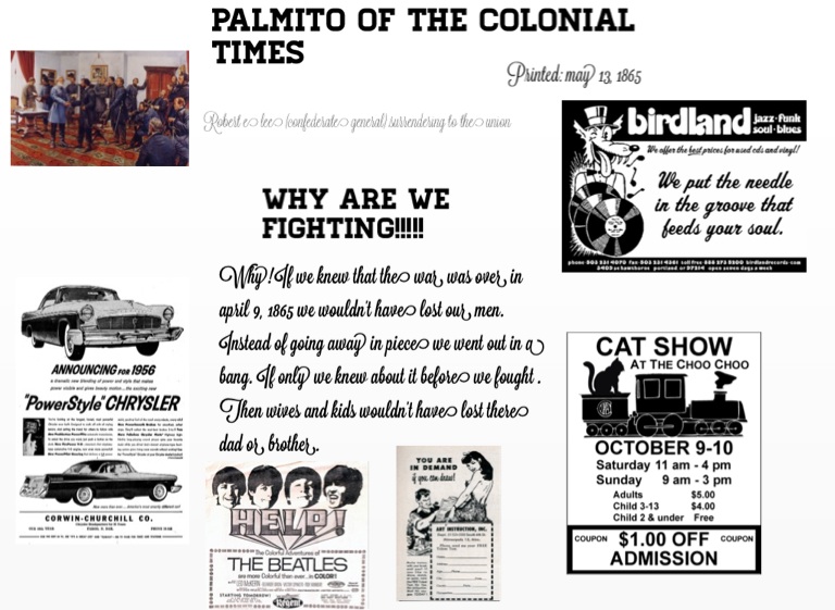 Why! If we knew that the war was over in april 9, 1865 we wouldn't have lost our men. Instead of going away in piece we went out in a bang. If only we knew about it before we fought . Then wives and kids wouldn't have lost there dad or brother.