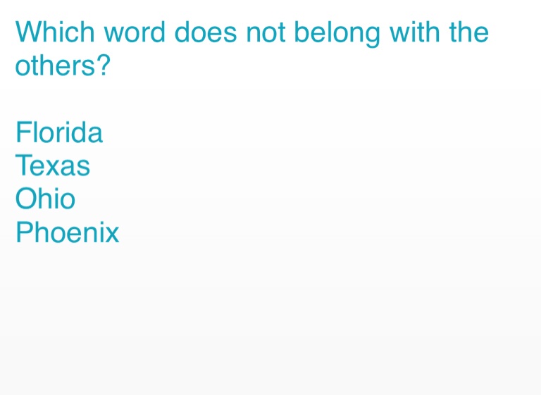 Which word does not belong with the others?