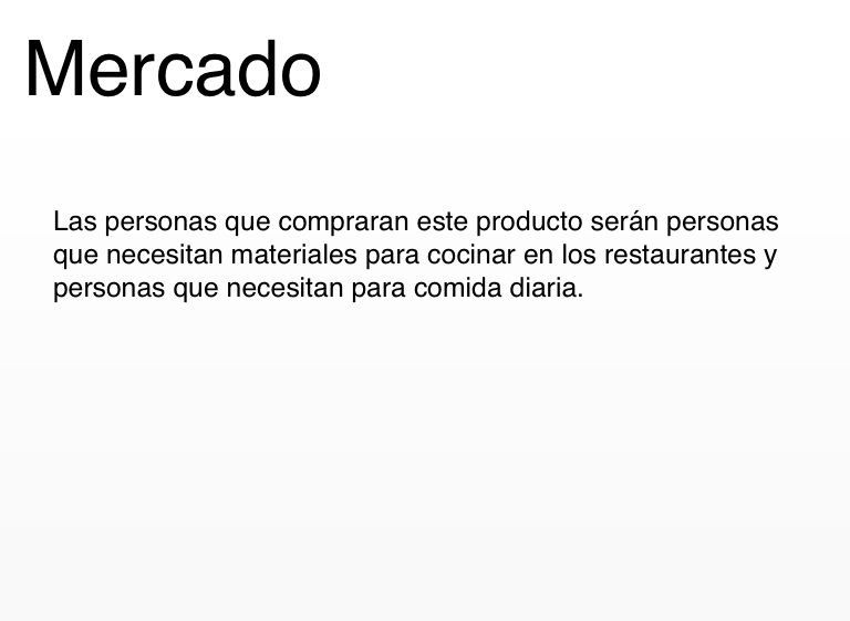 Las personas que compraran este producto serán personas que necesitan materiales para cocinar en los restaurantes y personas que necesitan para comida diaria.
