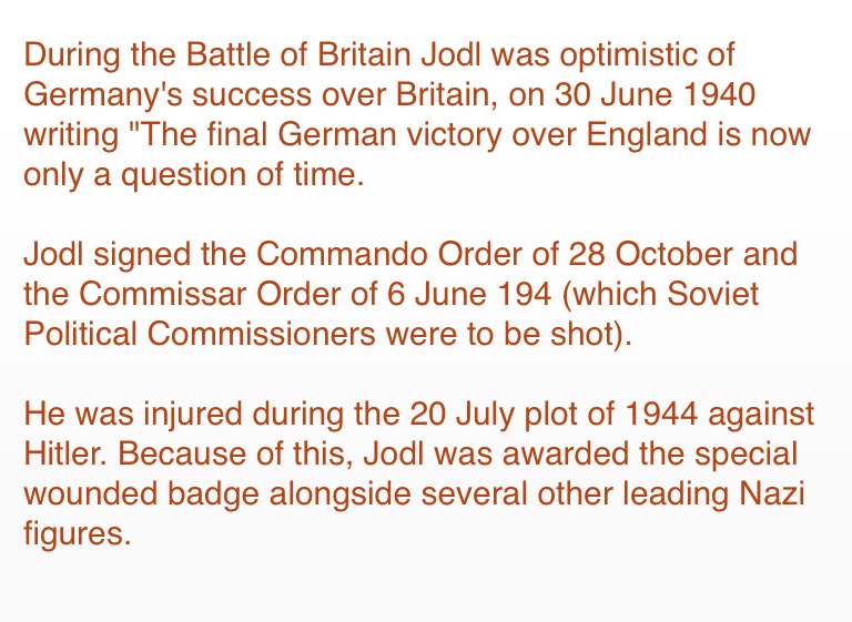 He was injured during the 20 July plot of 1944 against Hitler. Because of this, Jodl was awarded the special wounded badge alongside several other leading Nazi figures.