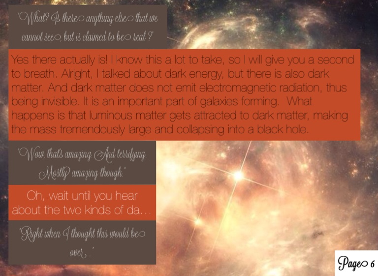 Yes there actually is! I know this a lot to take, so I will give you a second to breath. Alright, I talked about dark energy, but there is also dark matter. And dark matter does not emit electromagnetic radiation, thus being invisible. It is an important part of galaxies forming. What happens is that luminous matter gets attracted to dark matter, making the mass tremendously large and collapsing into a black hole.