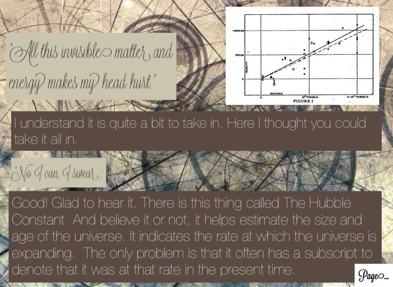 Good! Glad to hear it. There is this thing called The Hubble Constant. And believe it or not, it helps estimate the size and age of the universe. It indicates the rate at which the universe is expanding. The only problem is that it often has a subscript to denote that it was at that rate in the present time.