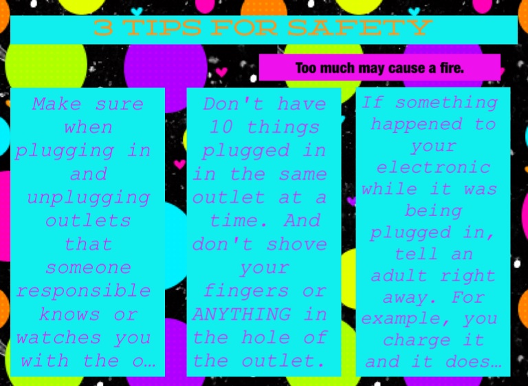 Don't have 10 things plugged in in the same outlet at a time. And don't shove your fingers or ANYTHING in the hole of the outlet.