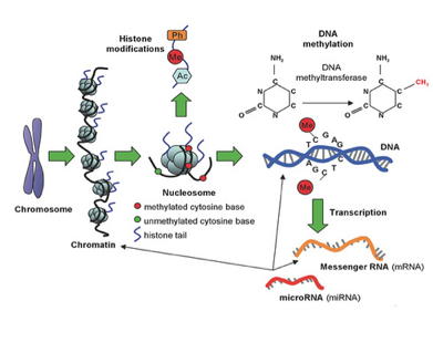 Por modificaciones post-traduccionales se puede modificar la configuración de las histonas. Las histonas sufren modificaciones por medio de procesos de acetilación, fosforilación, metilación, deaminación, isomerización de prolinas y ubiquitinización.