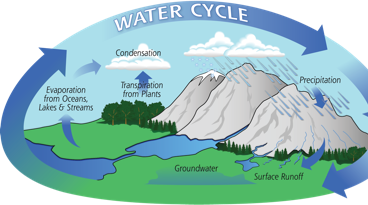 Sentence 1: In the water cycle, water moves from bodies of water, land, and living things on Earth's surface to the atmosphere and back to Earth's surface.